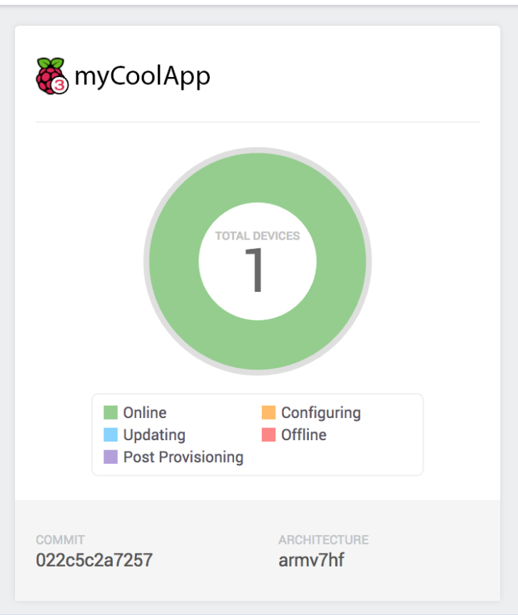 When you click into your application on the Resin.io dashboard you will see a list of all the devices that are connected under your myCoolApp.